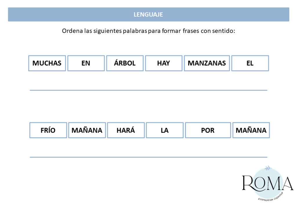 Este cuaderno está indicado para trabajarlo con personas con deterioro cognitivo leve o moderado, y podemos encontrar actividades de lenguaje, atención, memoria, percepción y funciones ejecutivas, repartidas en sus 32 páginas.