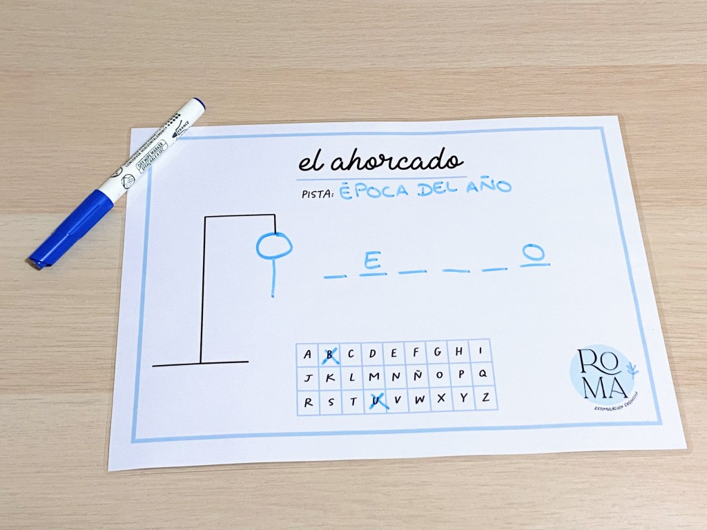 Es un recurso muy útil para trabajar el lenguaje, atención, memoria…, ya que a base de ir diciendo letras, tendremos que adivinar la palabra que ha elegido la otra persona. Y podemos llevarlo a cabo con todo tipo de personas, desde niños a mayores.