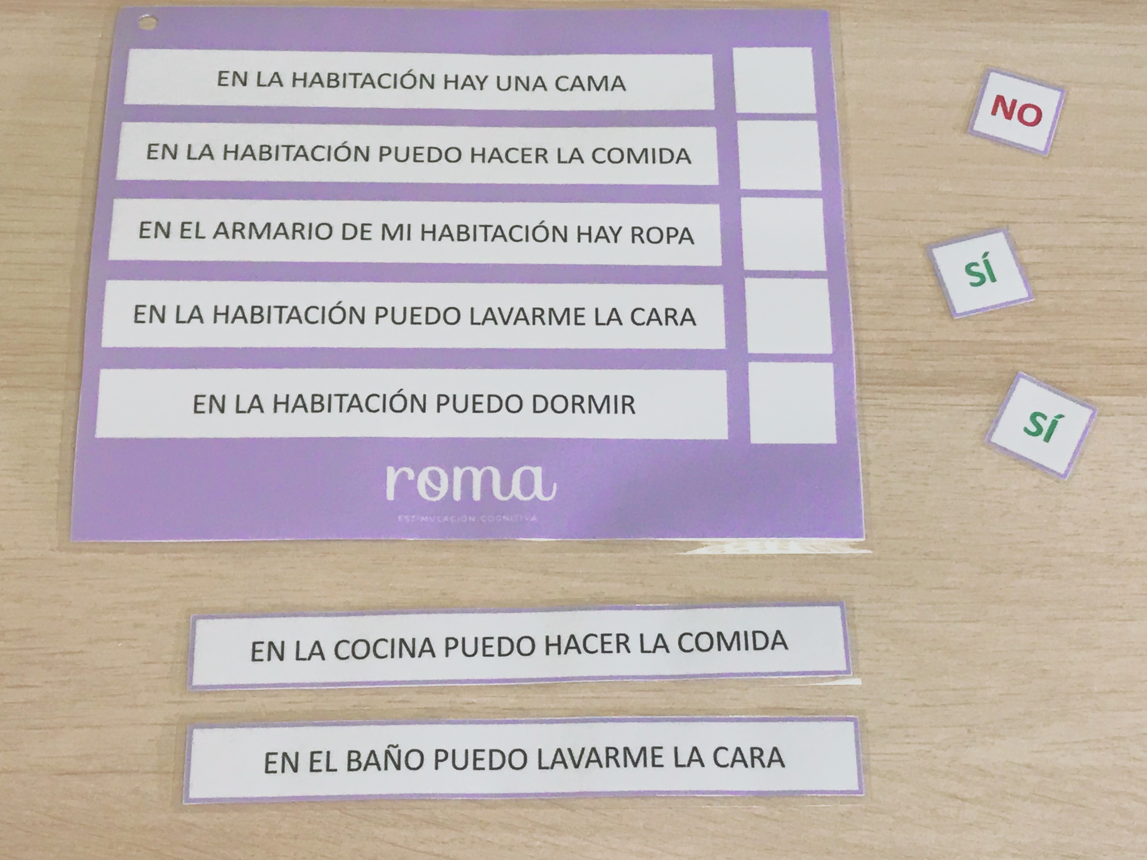 Hoy os traigo un material que nos ayudará a trabajar la orientación espacial dentro de casa. Qué hay en el baño, qué hay en la cocina… así como las actividades de la vida diaria que puedo realizar en cada una de ellas. Con ello, trabajamos la orientación espacial, praxias (cómo se utiliza cada objeto de la casa), comprensión de frases, razonamiento…
