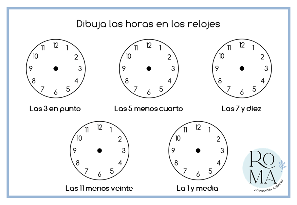 Además, contiene una segunda plantilla vacía, para que pongáis las horas que vosotros queráis, en forma de enunciado o incluso en hora digital.