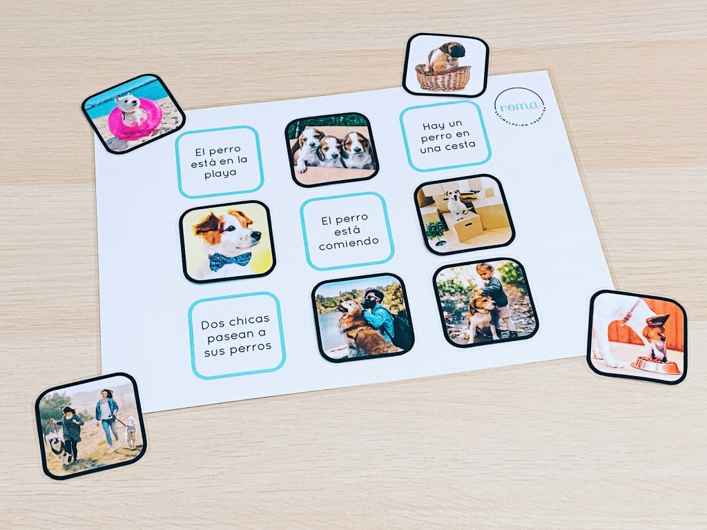 En el documento descargable encontramos dos tableros y dos páginas con imágenes que representan cada enunciado de los tableros. Por lo tanto, la persona con la que los utilicemos, deberá colocar cada imagen encima del texto correspondiente.