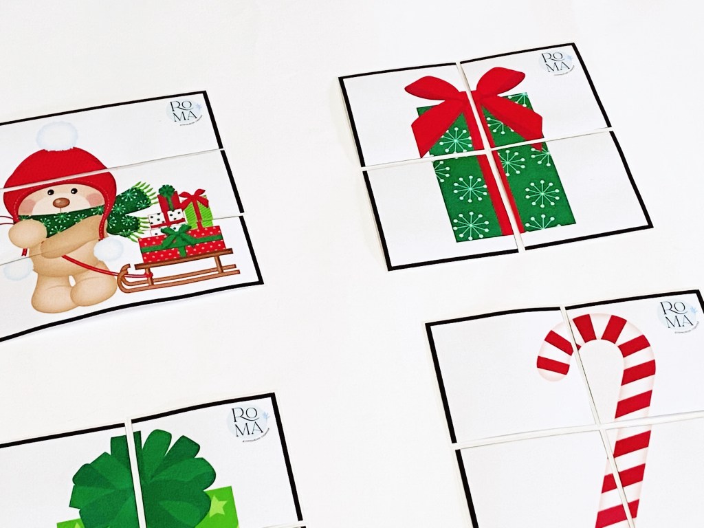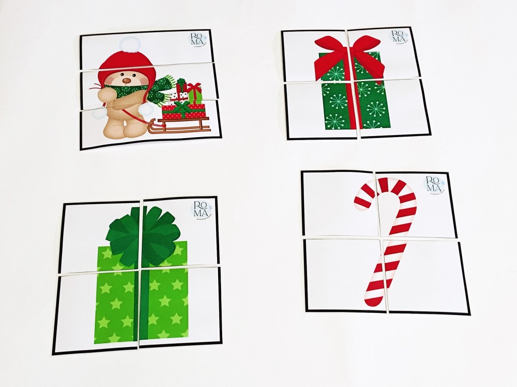 Se trata de diferentes puzzles de imágenes navideñas. Son sencillos: unos tienen 3 piezas y otros 4.