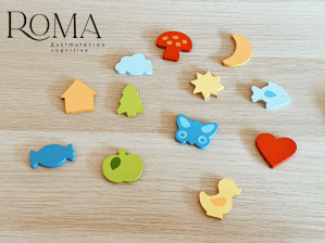 - RECONOCIMIENTO DE OBJETOS: podemos hacerlo con objetos cotidianos (cubiertos, esponjas, espejos, un lápiz, unas llaves… etc) o con piezas de madera de algún juego. Por ejemplo, este que os dejo por aquí. Son encajables de madera, pero podemos utilizar únicamente las figuras y deberán reconocerlas. Podéis encontrarlo en