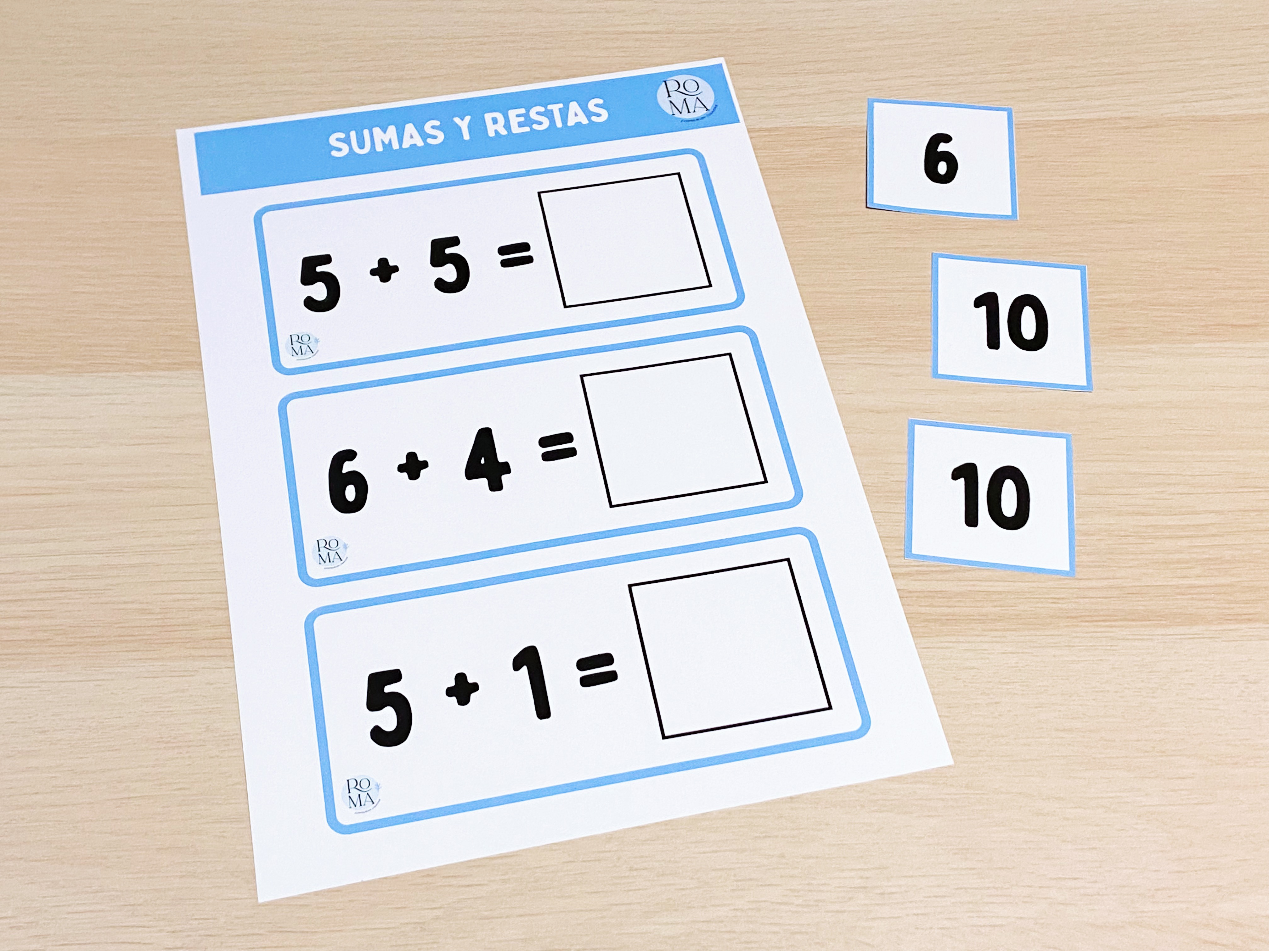 Podemos utilizarlo a modo de cuaderno o recortando en tarjetas. Además, podemos pedir que escriban el resultado en los recuadros, o en el caso de que tengan dificultad para escribir, pueden buscar el resultado entre las tarjetas más pequeñas y colocarlo.