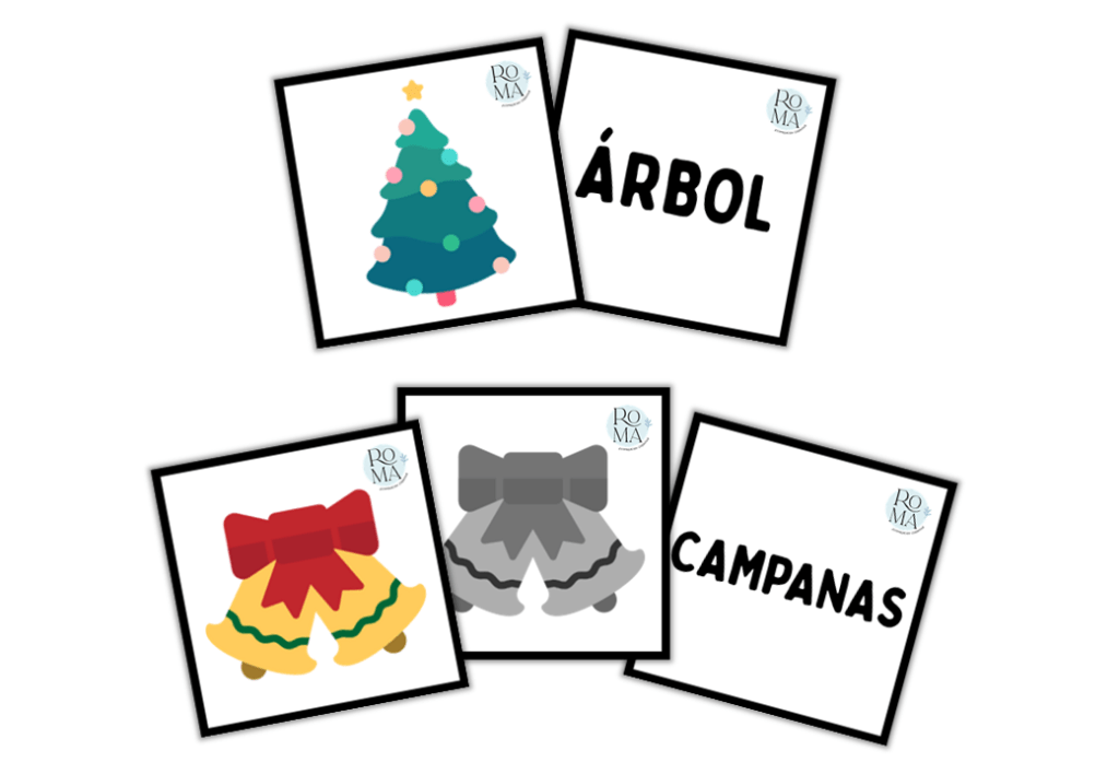 Aprovechando la temática de Navidad, he preparado un memory navideño. Bien podemos pedir que relacionen dos imágenes iguales, que relacionen imagen y palabra e incluso podemos imprimir dos veces las imágenes pero una en blanco y negro y otra a color.
