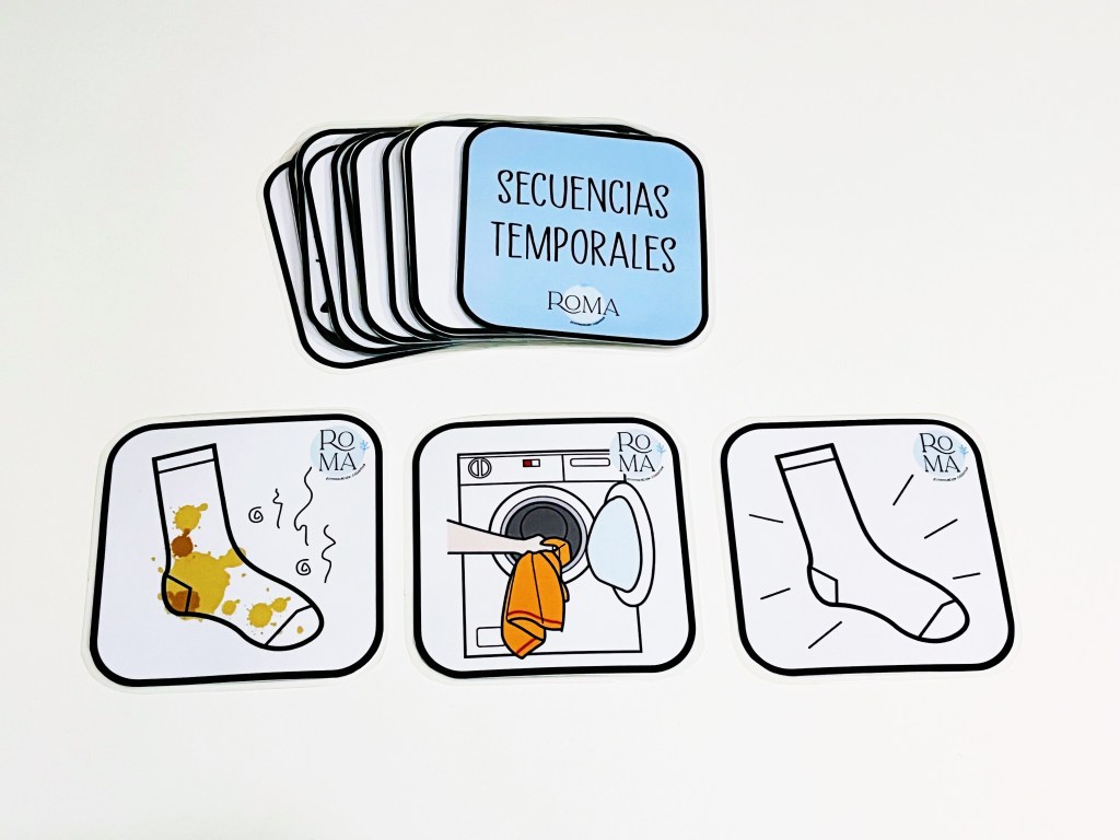 Hoy os dejo por aquí nuevo material de estimulación cognitiva. En este caso se trata de tarjetas con pictogramas para trabajar secuencias temporales.
