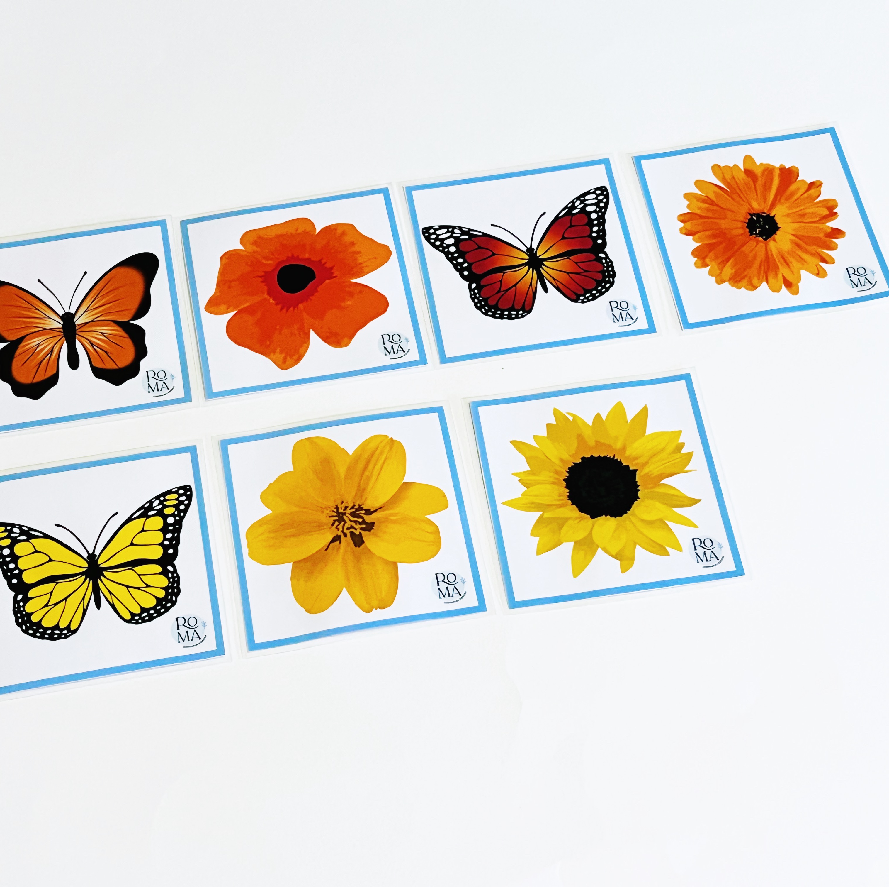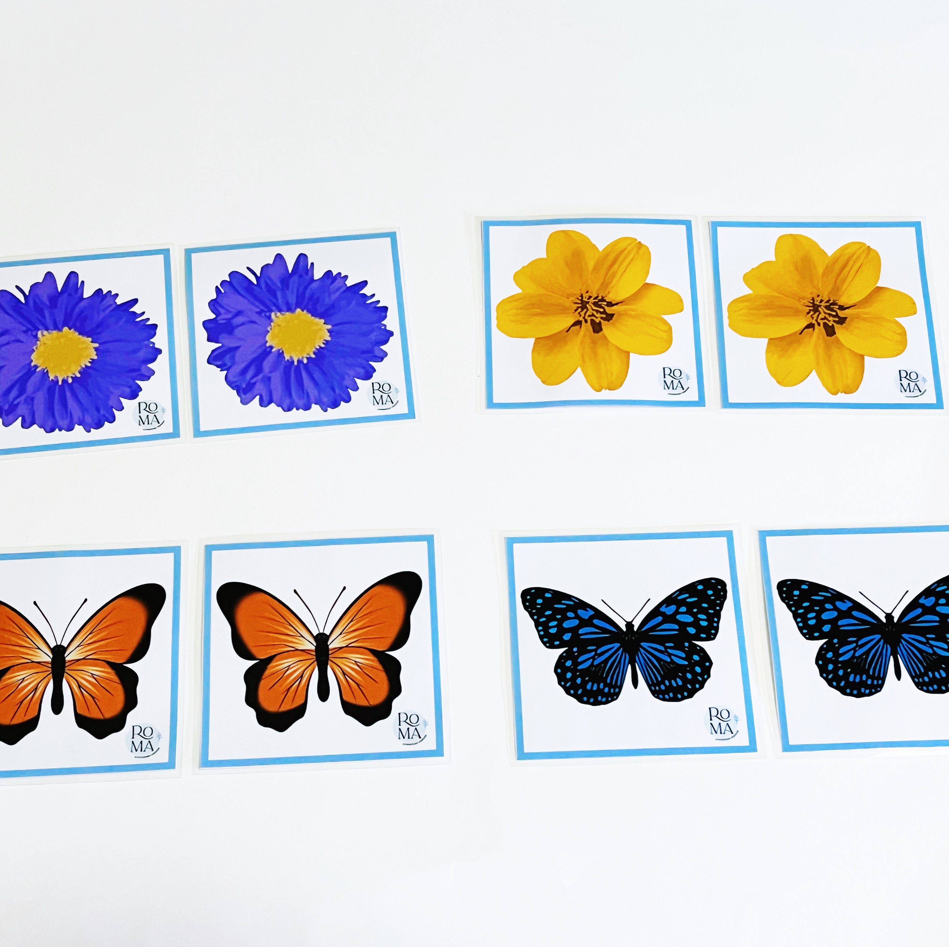 Se trata de unas tarjetas con imágenes de flores y mariposas. Están pensadas principalmente para hacer una actividad tipo memory o para realizar parejas de imágenes iguales, pero también podemos pedir que agrupen flores y mariposas del mismo color, podemos utilizar solo un tipo de imagen o todo junto… etc.